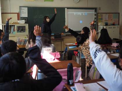 中国に関するクイズでは、中国でお正月や誕生日に食べる食べ物や、北京オリンピックのマスコットに関すること、中国の小学生の生活などが出題されました。答え合わせででは、自分が考えていたことと違うことも多かったようで、驚きの声が上がっていました。異国の文化に触れる良い機会となりました。