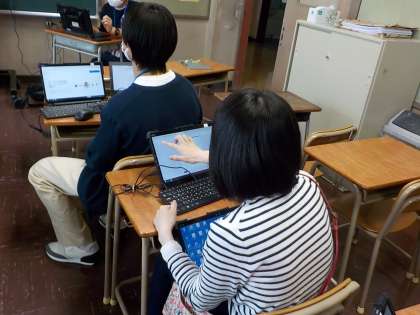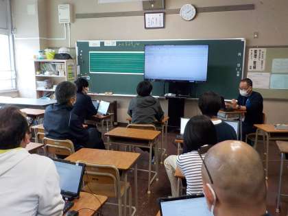 今日も新しく着任した先生を中心にしたタブレットの研修を行いました。今日はジャムボードやスライド、Googleフォームの使い方について研修しました。実際にこれらの機能を使った教材を使いながら、どのような場面で使うと効果的かについて学び合いました。様々な機能を試しながら、授業で活用できるようにしていきます。