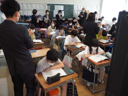 校内研究の一環として、6年生の学級で研究授業に取り組みました。今年度の研修主題は国語科(読むこと)の資質・能力の育成〜文学的文章における学習用端末の活用を通して〜」とし、物語文の学習を通して国語科の資質・能力を育むための学習指導法や不効果的な学習用端末の活用について研究をしていきます。