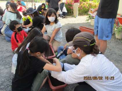 放課後子供教室に参加していた1年生の子供たちも一緒に参加!花の会の皆さんからもたくさんほめてもらいました。