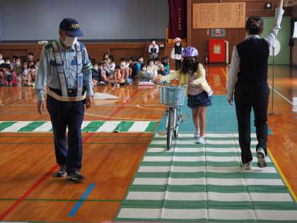 ヘルメットをかぶることの大切さや、自転車に乗るときの「3つの左」ルールを教えていただきました。