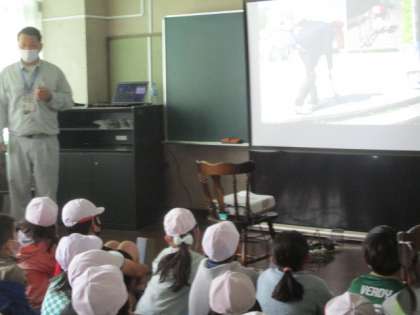 また、教室では、映像資料を使ってごみを減らすための取組「3R」の大切さについて教えてもらいました。ゴミを減らす努力や、ゴミを出さない工夫、そして、リサイクルなど資源を有効活用することなどについて学ぶことができました。