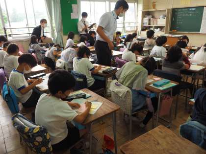 4年生の総合の授業を参観しました。4年生は「湯殿川探検隊」をテーマに、湯殿川の探索から学んだことを教材にしながら環境保全について学んでいます。今日は湯殿川の探索から分かったことを、「良いところ」「よくないところ」「おもしろいところ」の3点から意見を出し合いグループごとにまとめました。