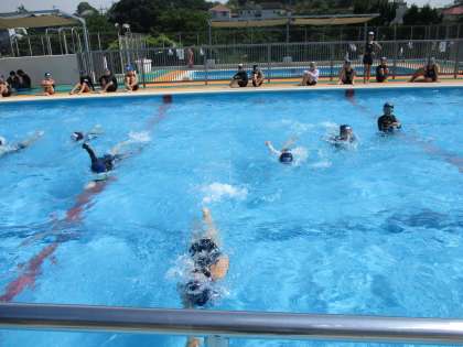 午前中は曇り空でしたが午後からは晴れ、プール日和となりました。午後の割り当ては5年生2学級です。暑くなったせいか、「早くプールに入りたい!!」と盛り上がっていました。水泳指導では、水慣れをした後、泳力に合わせて25mを泳ぐ練習をしました。先生たちの指導を受けながら、クロールや平泳ぎの練習に取り組んでいました。