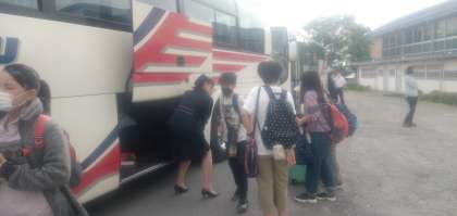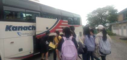 出発式で、挨拶や決まり、日程の確認をした後、いよいよ学校を出発です。