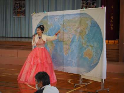 今回のテーマは「世界を知る、日本を知る」です。そのテーマの通り、日本の歌から世界の歌まで世界地図を見ながら音楽での旅を楽しみました。