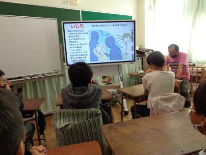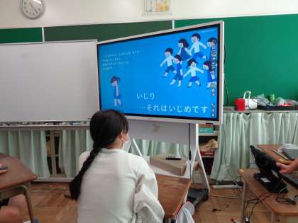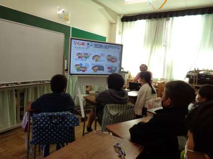 すみれ学級の高学年の道徳の授業を参観しました。「いじめといじり」を主題に、映像資料なども交えながら学習しました。「いじめはいけない」ということはみんな分かっていることですが、「いじり」はどうか・・・。「楽しいからいいんじゃない?」「その子だって笑っているから、OKじゃない」など、ゆすぶりをかける映像資料を見て、「だめだよ!」「心の中では、笑ってないかもしれないじゃない・・・」というつぶやきがありました。最後のまとめでも、「いじりもいじめに発展する」ということを確認することができました。