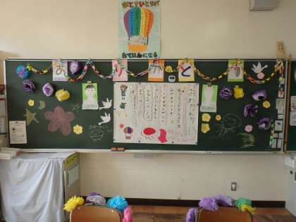 今日はすみれ学級の6年生を送る会がありました。すみれ学級は、1年生から6年生までが一緒に学ぶ学級です。一緒に勉強したり遊んだりした仲間として、今年は2人の6年生を学級から送り出します。2月末から在校生と卒業生に分かれて練習や準備をしてきました。