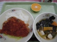 今日の献立は、かつめし・青菜と豆腐のすまし汁・みかん・牛乳です。今日は、兵庫県の...