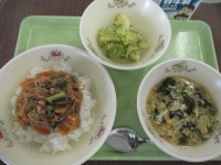 *献立名*ごはん・マーボー豆腐・青菜のごま和え・野菜スープ・牛乳