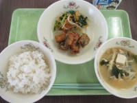 *献立名*ごはん・生揚げのみそ炒め・たまごスープ・くきわかめのにんにく炒め・牛乳