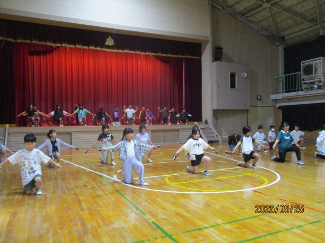 「よさこい」の歴史や、4年生の思いを聞き、少しだけ踊りのポイントをたてわり班で教えてもらいあっという間に今日の練習が終わりました。