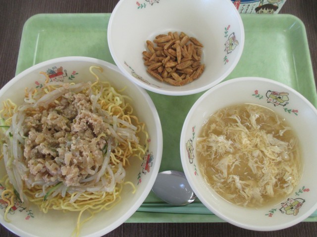 ジャージャー麵・冬瓜のスープ・黒糖アーモンド・牛乳