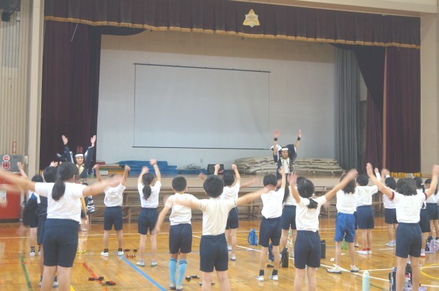 3・4年生 運動会練習 公開日 2025/10/01 更新日 2025/10/01 学校日記 運動会に向けて3、4年生合同の練習が始まっています。今日はスペシャルゲスト「躍動」の方々をお招きし、よさこいの練習に取り組みました。「躍動」の方々のエネルギッシュなよさこいを目の前で見ることで、一層やる気が高まり、太鼓のリズムに合わせて大きく体を動かしたり、元気よく掛け声を出したりと、短いながらも充実した時間を過ごすことができました。子どもたちの表情や掛け声がとても素敵だったと、たくさんお褒めの言葉もいただき、今後の練習に向けての気持ちも高まりました。1週間後にも再度ご指導いただく予定です。成長を見せられるように、さらに練習を重ねていきます。 いいね(1)