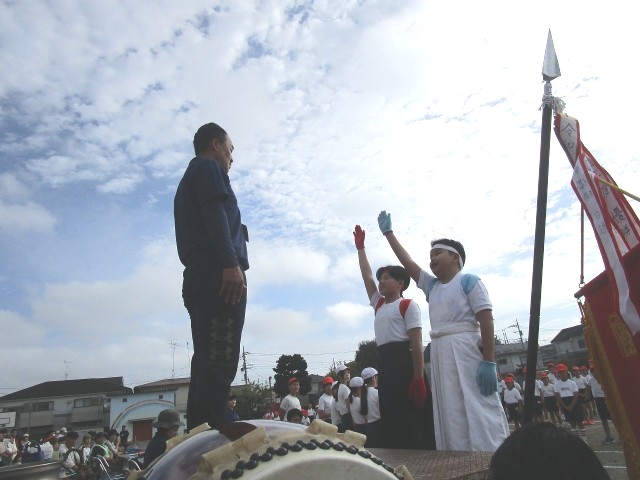 赤・白各組の応援団長が高らかに選手宣誓を行い、士気を高めました。