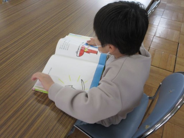 読み聞かせの本は、今国語で学習している「はたらく じどう車」でした。