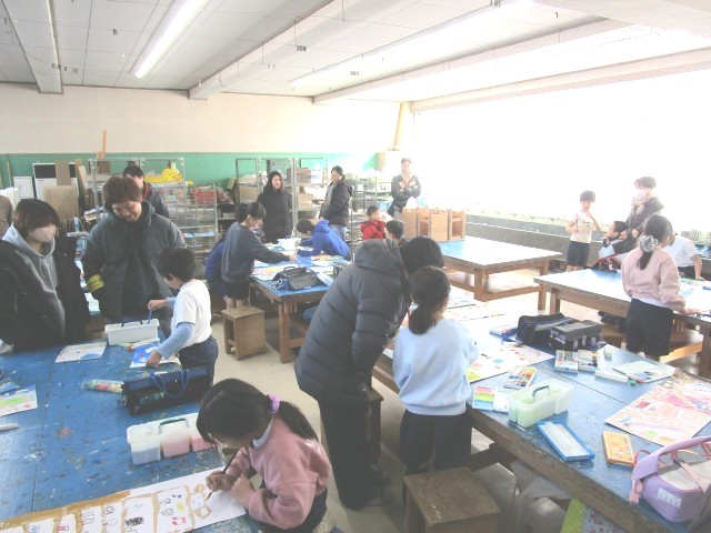 それぞれの学習に一生懸命取り組んだり、保護者の方と一緒に活動を楽しんだりしました。保護者の方と一緒に色塗りをしたり、地域の商店カルタをしたり、傍で見守ってもらったりしているためか、いつもより笑顔が多く見られた気がしました。また、昔遊びや昔の道具調べ、高齢者福祉体験など、地域の先人の思いや願いを考えるとともに共生社会について考える契機となる授業も展開されていました。
