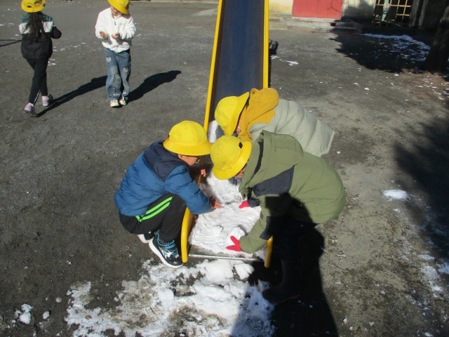 昨日は、校庭の雪で遊びました。