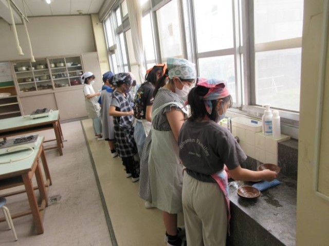 家庭科の学習で、お茶をいれました。
