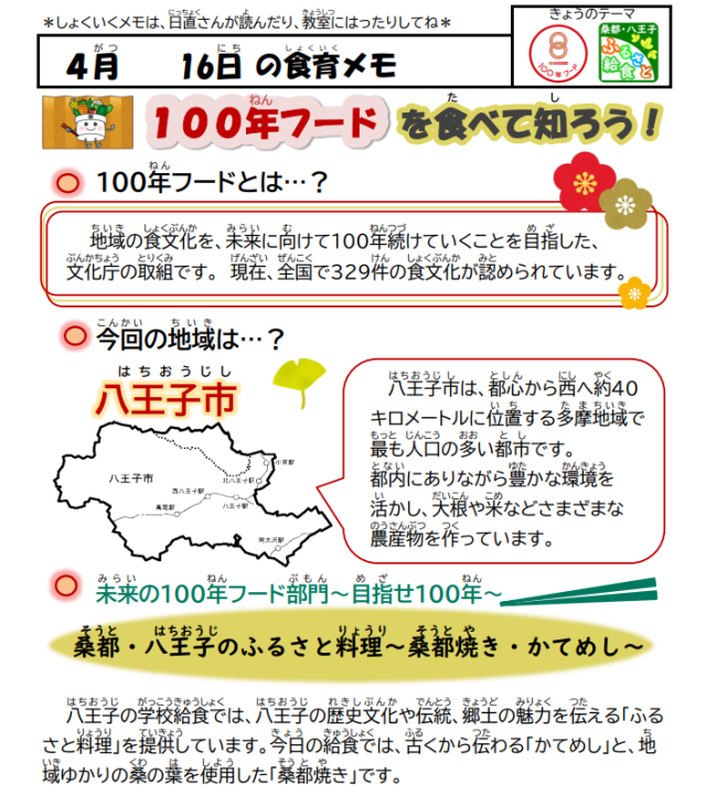かてめし・白身魚の桑都焼き・大根の風味漬け・はっちくんのみそ汁・果物(なつみ)・牛乳