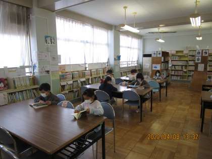 スマートフォンやタブレットPCがより身近なものとなった一方、視力に及ぼす影響も問いただされています。2年生は、視力検査後の図書の時間で本を読むときに、良い姿勢で目が近くならないように気を付けて読書をしていました。