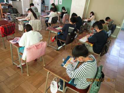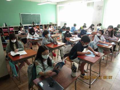 国語タイムも始まりました 公開日 2022/04/12 更新日 2022/04/12 学校日記 今朝は国語タイムがありました。毎週火曜日の朝は、15分程度の国語科の学習を行っています。 今日は、詩を音読しているクラスや、新出漢字練習を行っているクラスなどが見られました。新出漢字の練習でも、漢字ドリルに直接書いているクラスや、習熟を図るためにタブレットPCを使って漢字練習しているクラスなど、子供の実態に合わせて様々な活動が行われていました。 いいね(0)