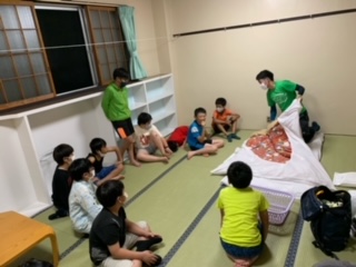 布団の敷き方を学んだ後は、よく考えながら就寝の準備をしていました。