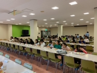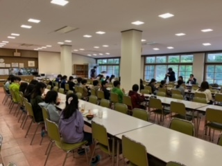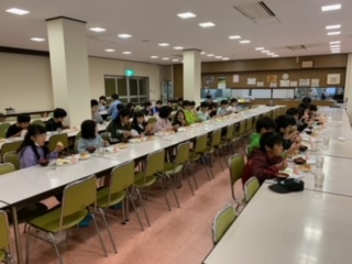 朝食はパンです。子供たちはよく食べていました。この後も元気に過ごせるといいです。