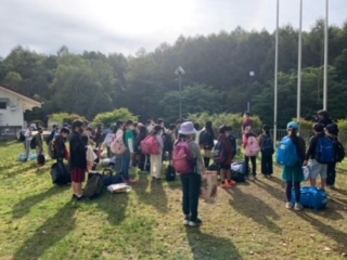 一泊二日お世話になった姫木平自然の家ともお別れです。しっかりと宿舎の方にお礼を伝え、出発しました。