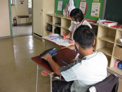あさかぜでは、間違い探しのプリントや先生と一緒に1週間の振り返りをしていました。