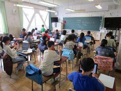 農作業を終え、午後からは東京都児童・生徒の学力向上を図るための調査でした。学習用端末を使って、学習に対する意識について回答していました。