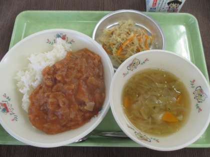 ハヤシライス・じゃこサラダ・野菜スープ・牛乳