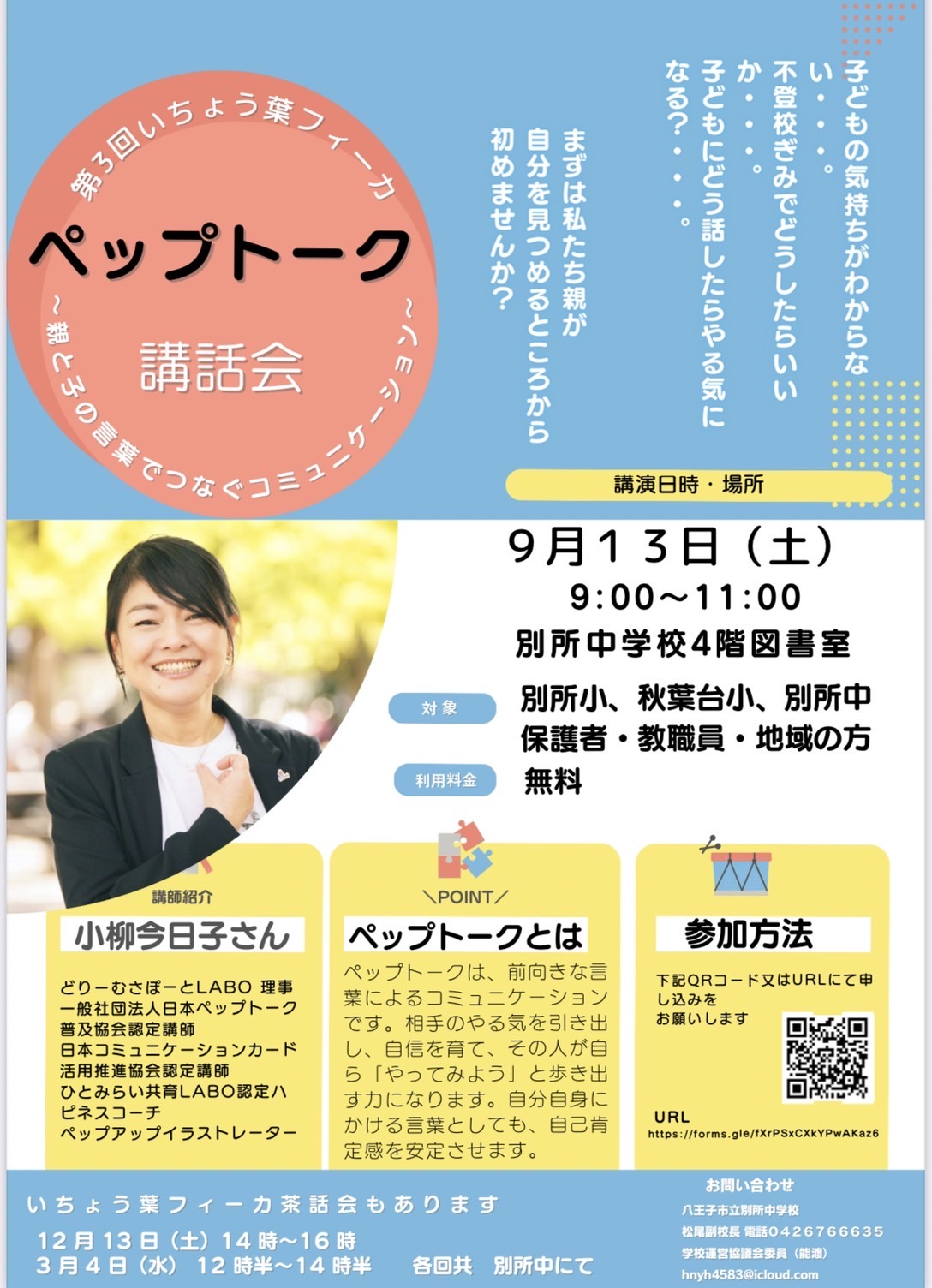 親カフェ&こどもカフェの御案内です。親カフェは、不登校等子育てで困っている事や気持ちの共有、生活でのお困りごと、学習や進路について等情報交換をすることでモヤモヤが少しでも吐き出せる場所として気軽にご利用ください。子どもカフェは、ボードゲームをしたり、読書をしたり、自由に過ごせる場所です。参加者も買いを重ねるごとに増えています。チラシのQRコードからお申込みください。御参加お待ちしています。