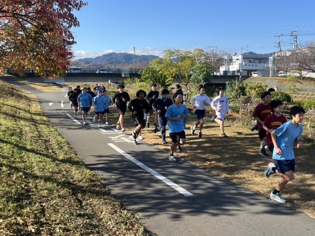 11月29日はロードレース大会にむけて陸上部とバスケットボール部が合同練習を行いました。学校から河川敷まで走り、コースを確認した後、全員でタイムトラアイルを行いました。多くの生徒が前回のタイムよりもあがっていて、2週間後のロードレースが楽しみです。また今日の試走には地域の小学生も参加してくれました。地元のロードレース大会、みんなで盛り上げていきましょう!