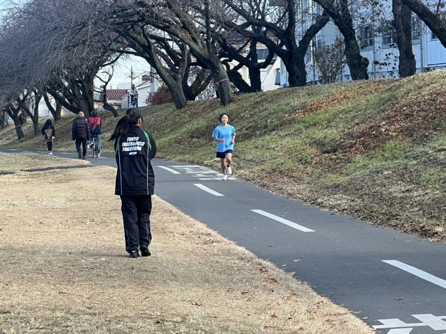 12/6(土)の陸上部の練習は、先週に続いて浅川の河川敷で練習をしました。スタート時刻を伝え、各自でアップをする本番を想定した動きの練習をしました。自己ベストを更新できた選手、先週よりもタイムが落ちてしまった選手。陸上の練習を通して、指示された動きだけでなく、自らが考えて主体的に動くことの大切さを学んでいます。