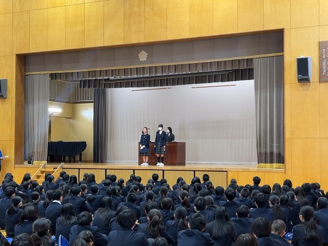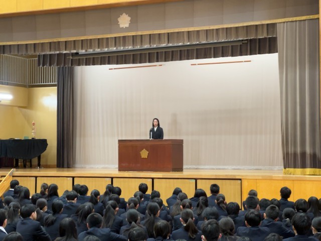 続いて、野球部、卓球部、そして、12/13(土)に行われた横山地区ロードレース大会の表彰がありました。ロードレース大会では、陸上部以外にもバスケットボール部や他の部活動からの参加もありました。みんなで地域の行事を盛り上げていきましょう!