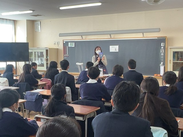 1年2組は司書の先生がクラスに来て、新しい本を紹介してくれていました。今後、全クラスをまわり、本を紹介してくれます。朝の10分間を大切に、新しい世界と出会いましょう!