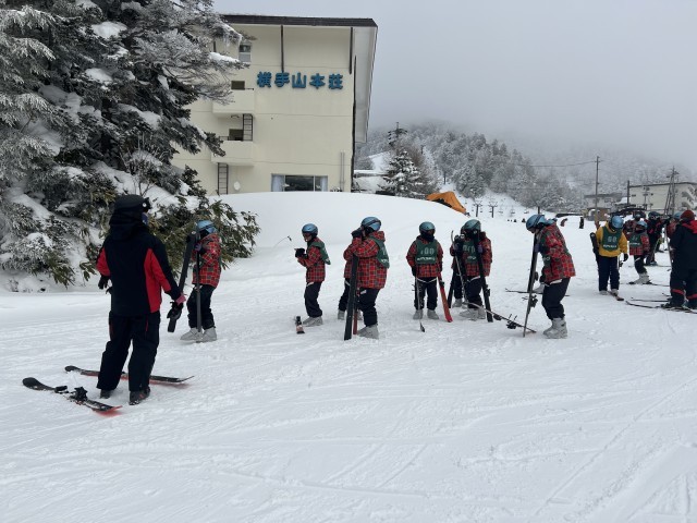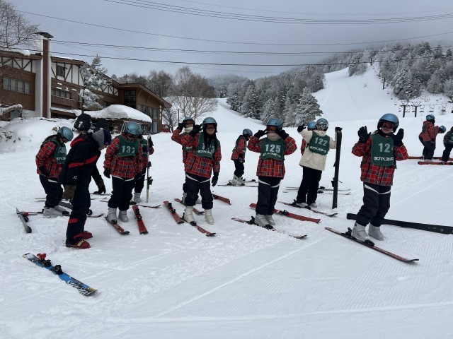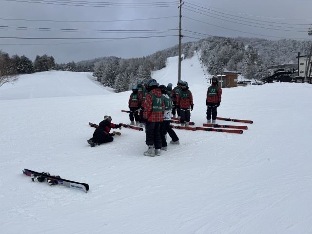 リフトを降り、転び方や緩やかな斜面を片足で滑る練習などしていました。