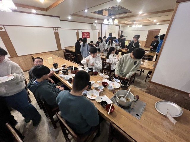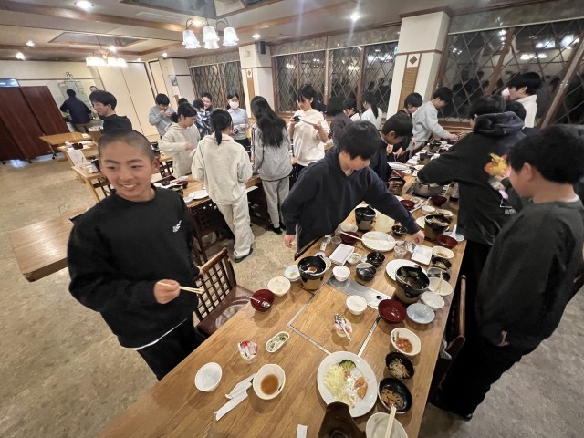 「ごちそうさま」の号令の後は、みんなで片づけをしています。