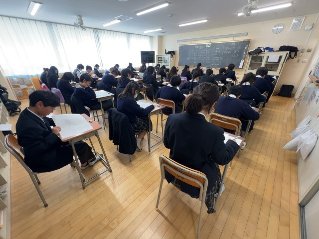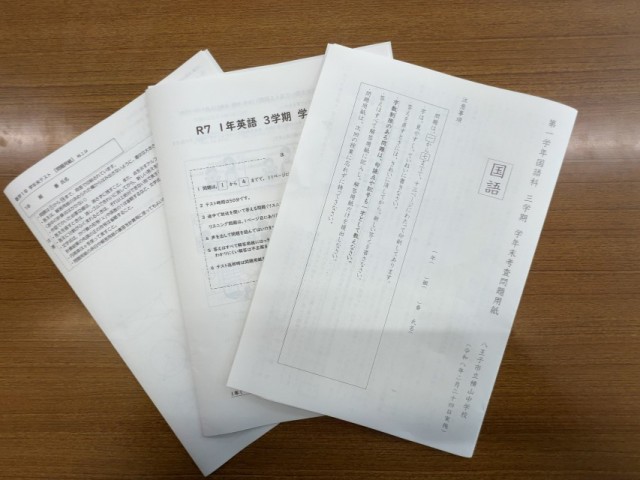 2月24日(火)から学年末テストがはじまりました。1日目は数学、英語、国語、技術・家庭科、保健体育の5教科、2日目は社会、理科、音楽、美術の4教科で実施されます。