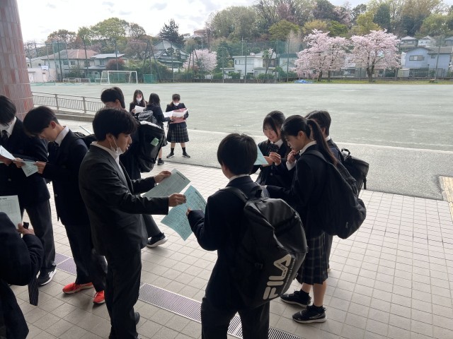 4月6日月曜日、新学期が始まりました。昇降口前で新しい名簿が配られ、クラス発表がありました。
