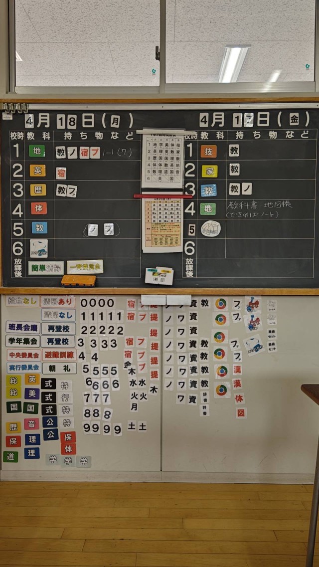 連絡黒板を利用して教科係の仕事が始まりました。毎日教科連絡を確認して忘れ物がないようにしましょう。