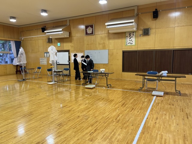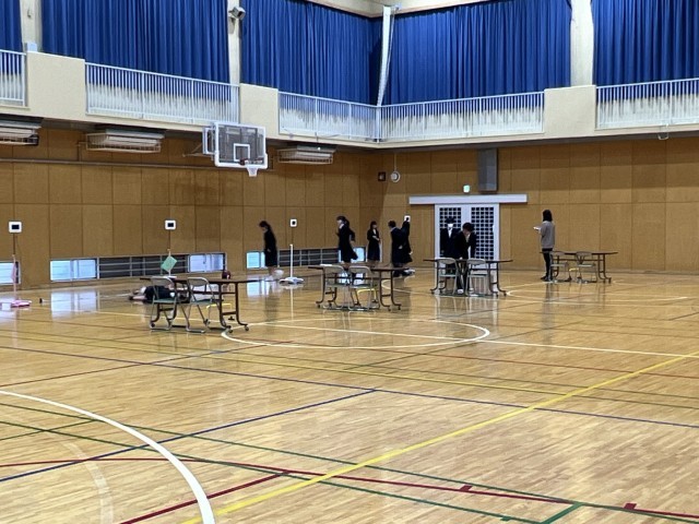 明日の身体計測にむけて、1年生の保健委員が会場の準備してくれました。
