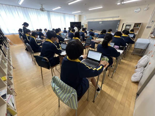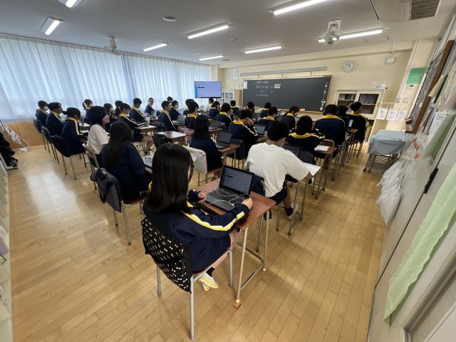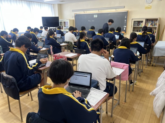 3年生は全国学力調査(英語)を実施しました。読むこと、書くこと、聞くことについてChrome bookを使って実施しました。