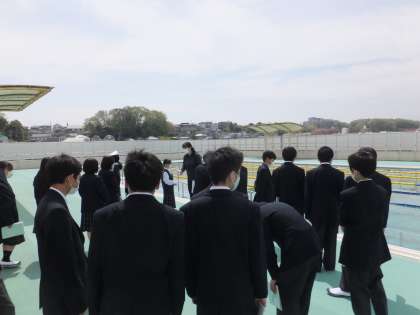 3,4時間目に校内めぐりをしました。屋上のプールと音楽室の様子です。
