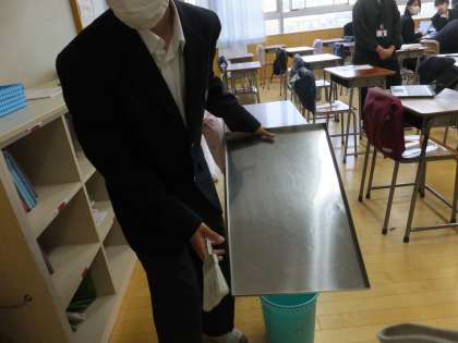 保健委員会はトイレットペーパーの補充など協力して活動していました。整備委員会の生徒は、清掃ロッカーの掃除の仕方を丁寧に説明していました。生活委員会は4月の掲示物を作成しました。素敵なあいさつで一日をはじめようとする気持ちが伝わります。
