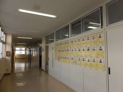 2年生の廊下に自己紹介の掲示があります。素敵な笑顔で迎えてくれます。