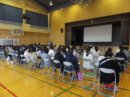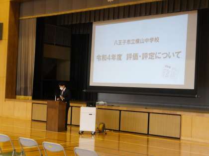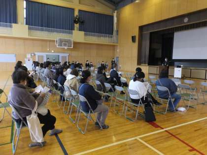 全大会の様子です。評価・評定の説明会、PTA会長よりお話がありました。