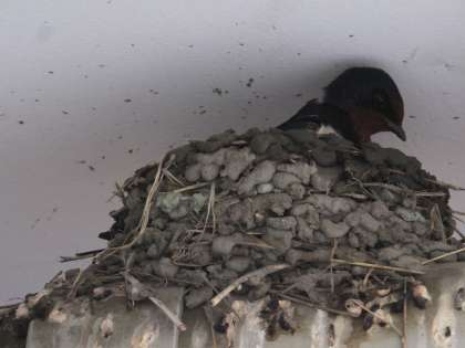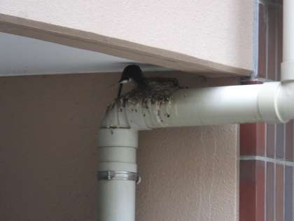 横山中ピロティーにつばめの巣が複数つくられて、親鳥が行き来しています。