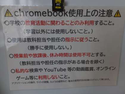 もう一度chromebook使用上の注意を確認して有意義に学びましょう。